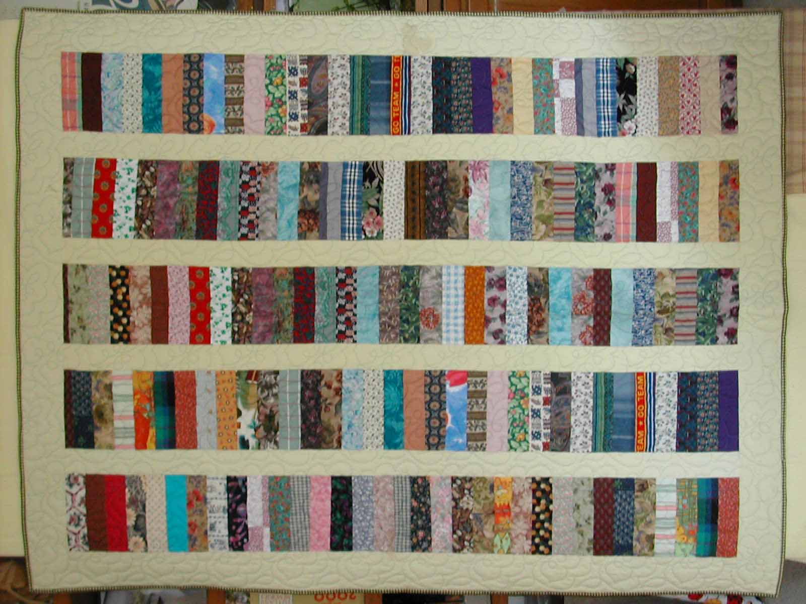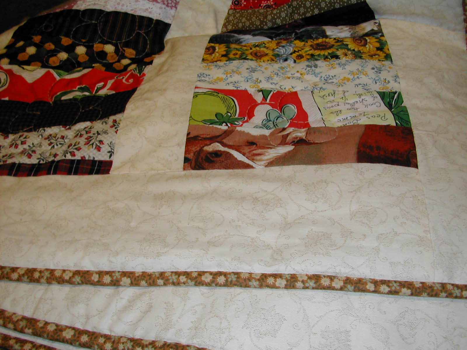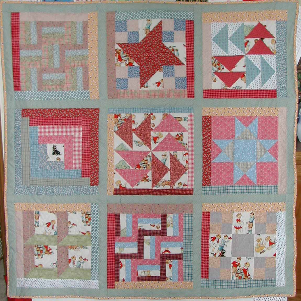 sampler blocks were machine quilted a bit different. Completed June 2002. |